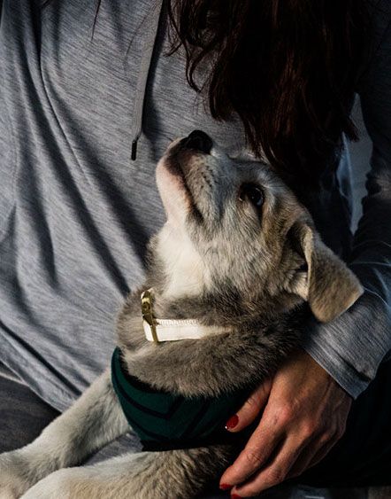 The photos of Winter on her first day in her new home are irresistibly cute. At first, she’s shyly hiding behind furniture and exploring her new surroundings with wide, curious eyes. Her little paws and twitching ears peek out from behind various objects, capturing the playful apprehension of a new puppy settling in.