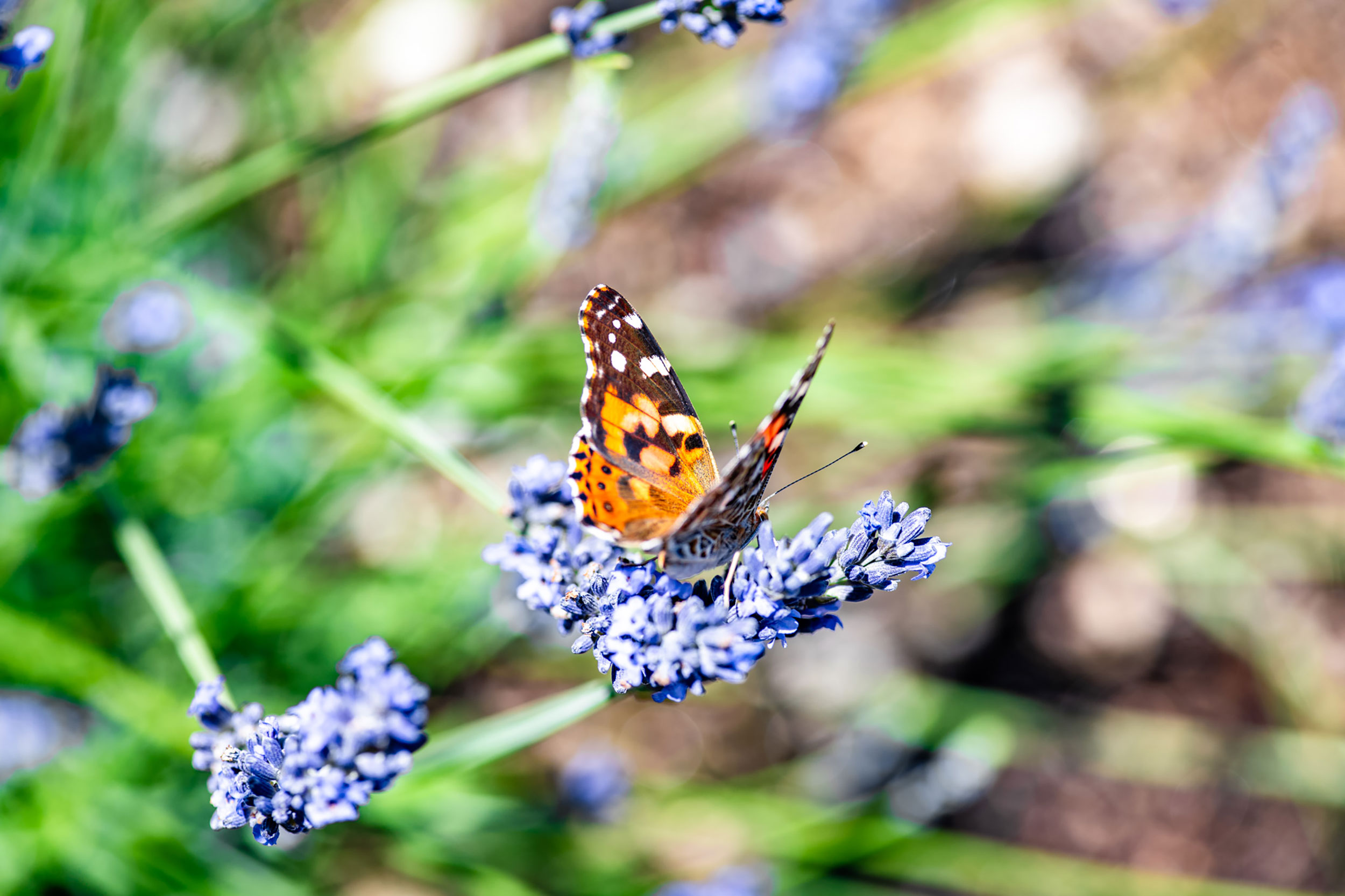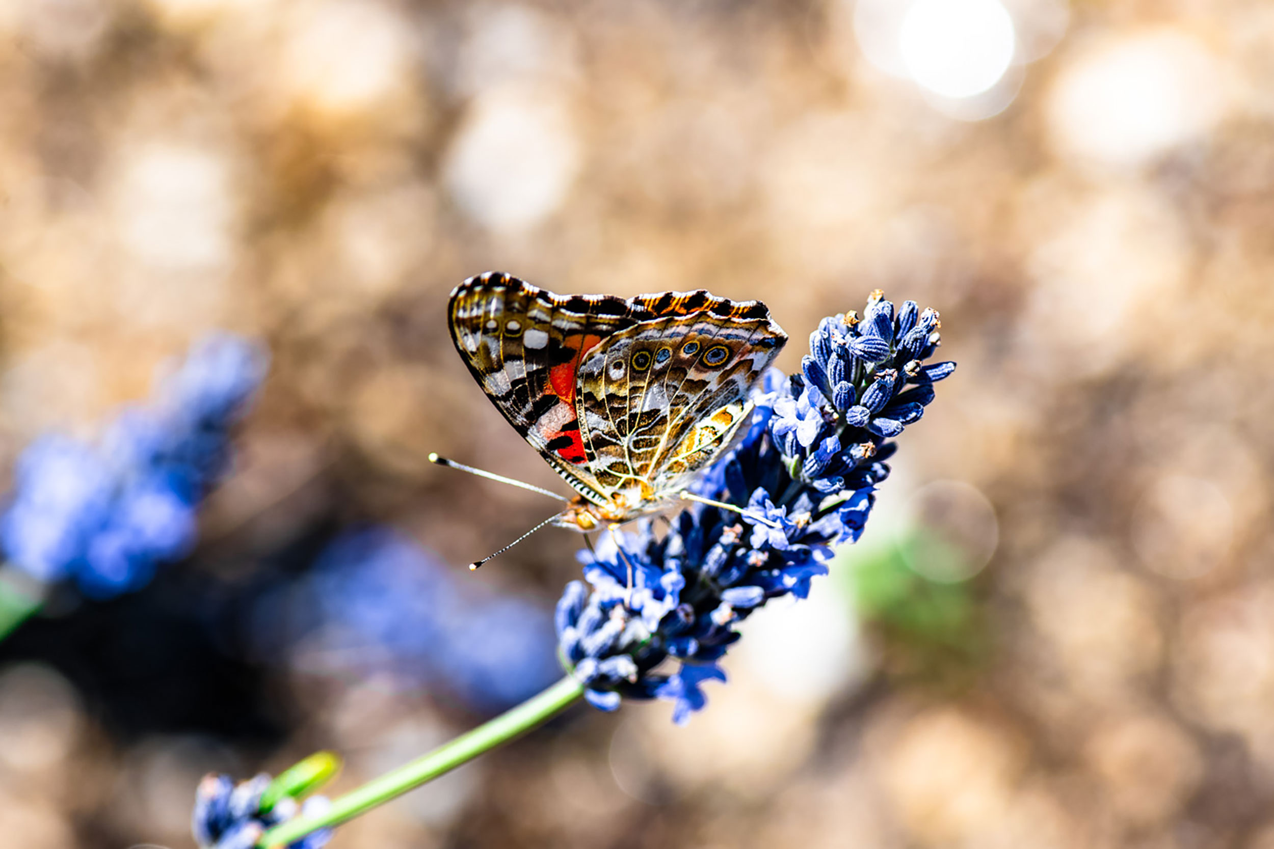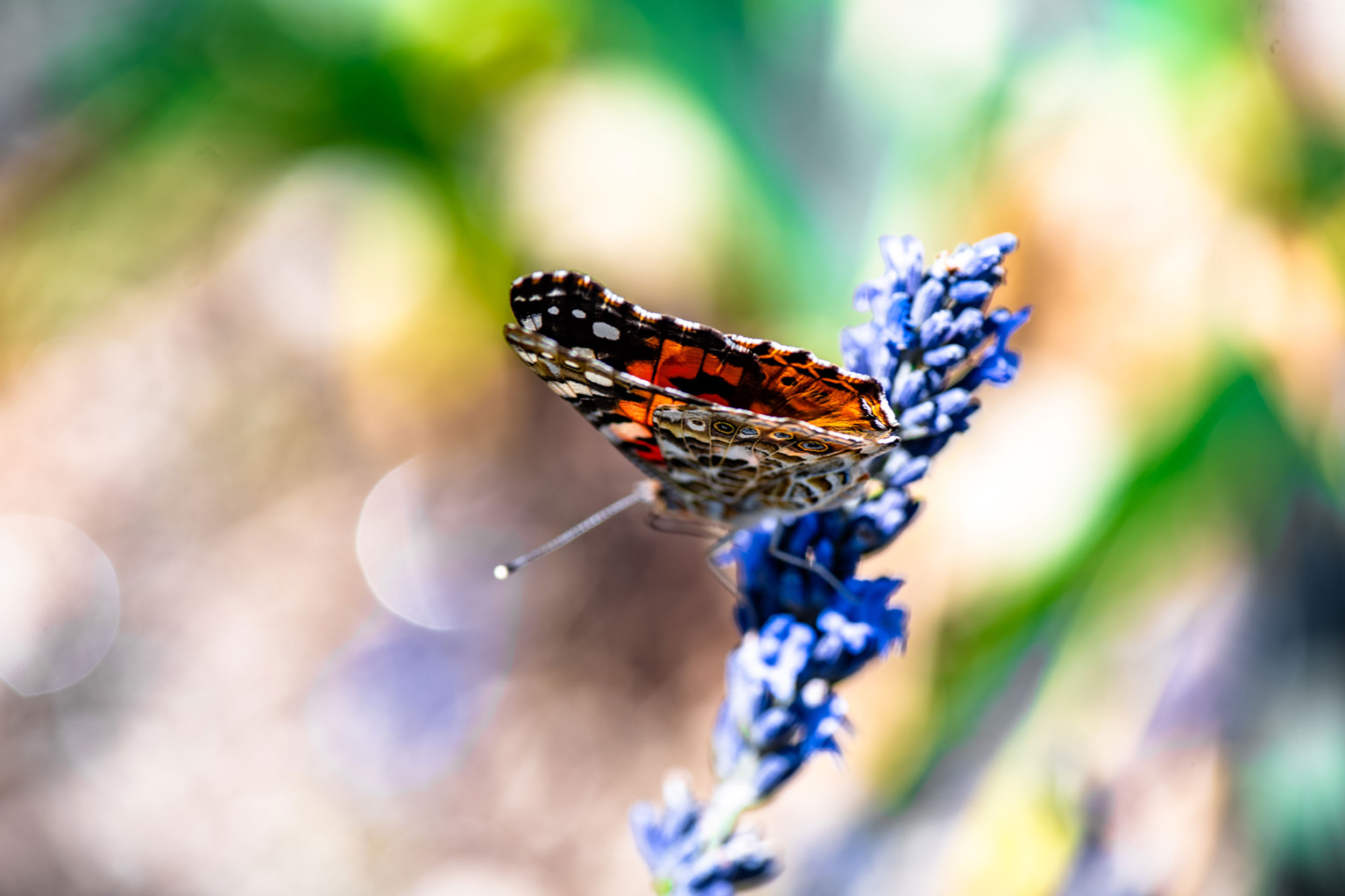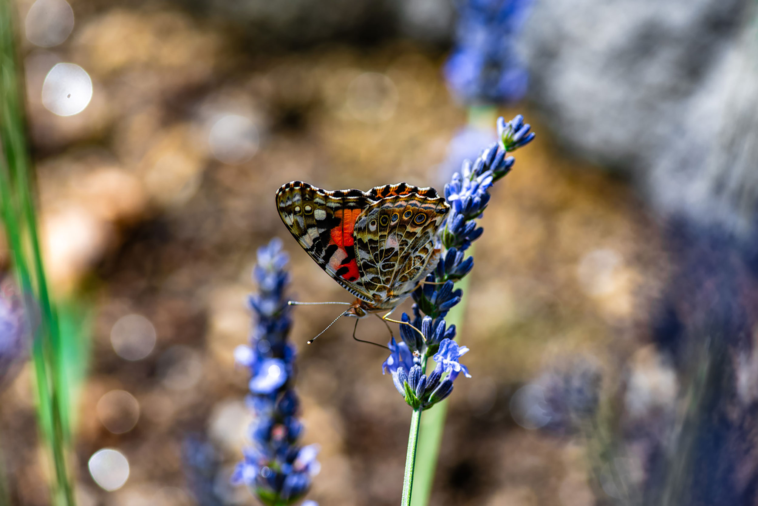 This intimate photo shows a butterfly quietly perched on a lavender stalk, its wings folded like petals in the breeze. Surrounded by gentle hues and the calm of the garden, it’s a moment of stillness that speaks to the fragile beauty of the natural world.