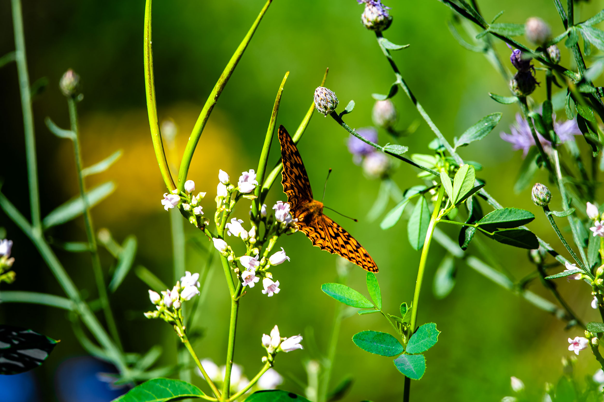 Perched delicately with wings folded tight, the butterfly rests on a lavender stem, blending seamlessly into the garden’s soft palette. This peaceful snapshot captures the elegance of stillness, a quiet breath of nature in perfect balance.