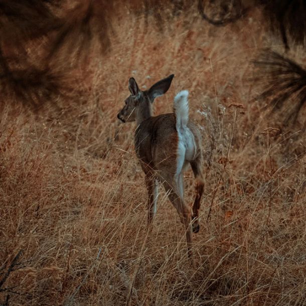 Late in the fall, Aretha, the young female deer, roams our yard with a serene grace. The crisp, autumn air highlights the rich hues of her coat as she nibbles on the remaining greens. With fallen leaves scattered around and the landscape shifting to winter’s embrace, Aretha’s calm presence adds a tranquil touch to the fading season, a gentle reminder of nature’s enduring beauty even as the year draws to a close.